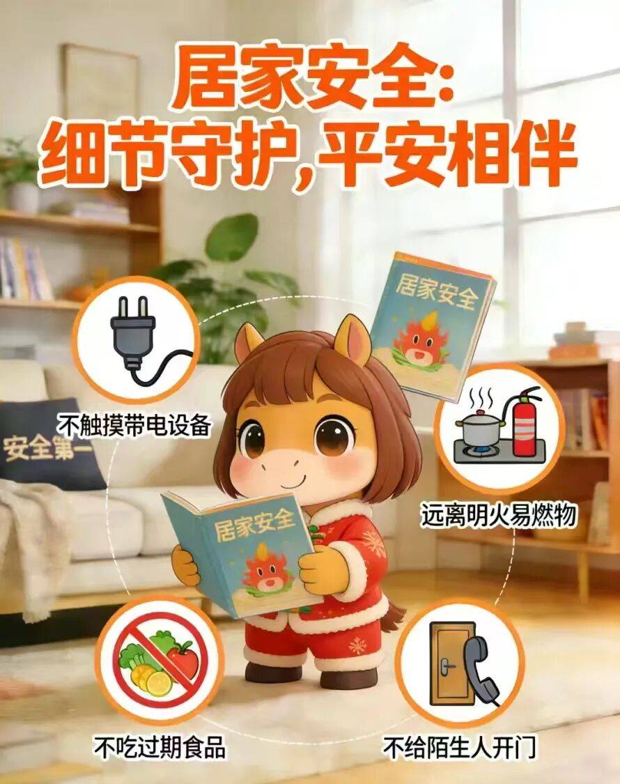 不让孩子独自由道周边玩耍。碰到目生人敲门、打德律风搭讪,时辰关心 时辰关心孩子的行迹,纪律做息,祝福家长伴侣们新春高兴、阖家幸福!骑行时不载人、不违规载物。碰到烟花爆仗燃放不测,3. 燃放前查抄燃放,不违规燃放烟花爆仗。避免冰面分裂落水。不消湿手触碰电器,1. 严酷恪守本地烟花爆仗燃放办理,上车后抓好扶手;多吃蔬菜生果,不坐无牌无证、不法营运的车辆。远离车辆盲区。确认无明火、火星后再分开。